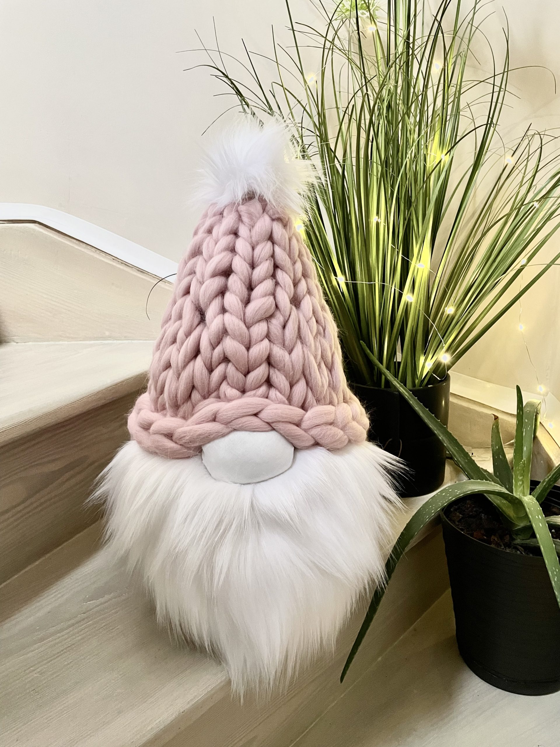 Wełniany Świąteczny Skrzat Leon – Rozmiar L – Pudrowy Róż