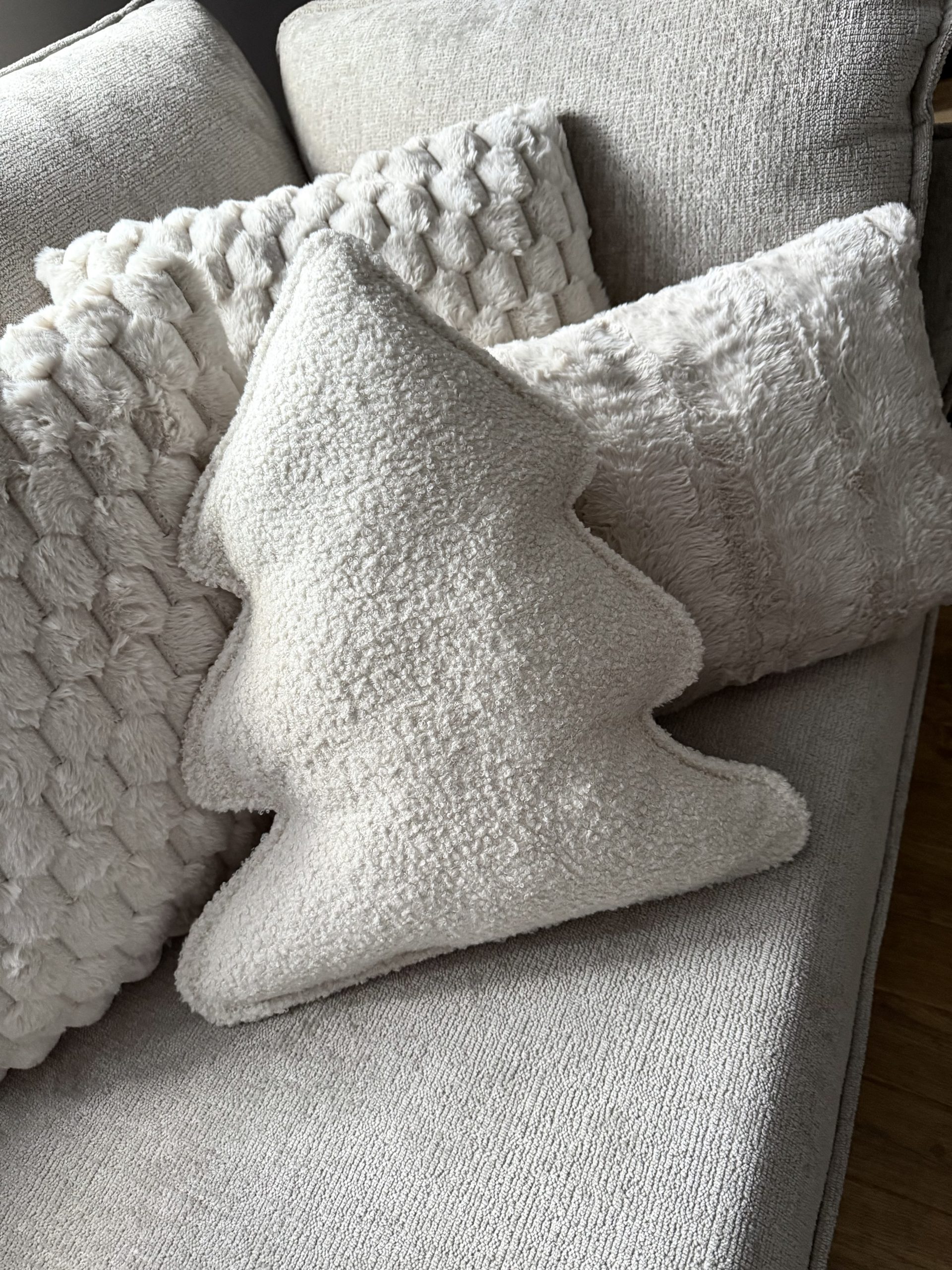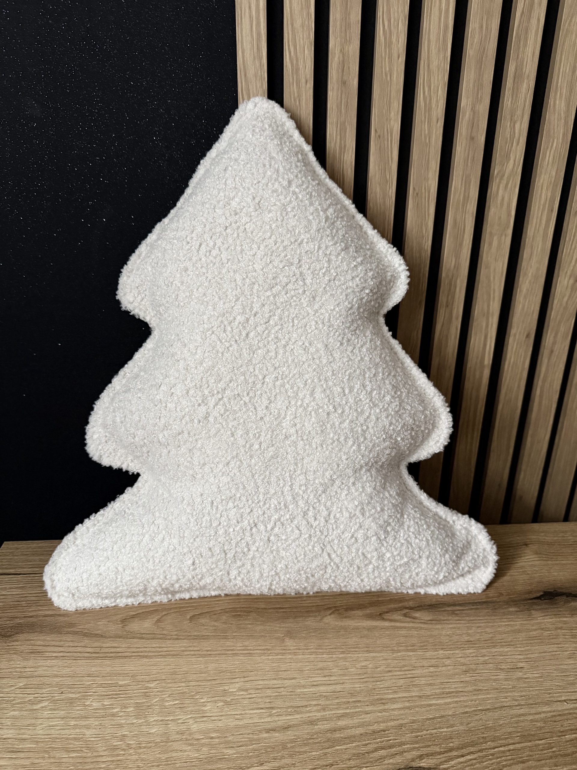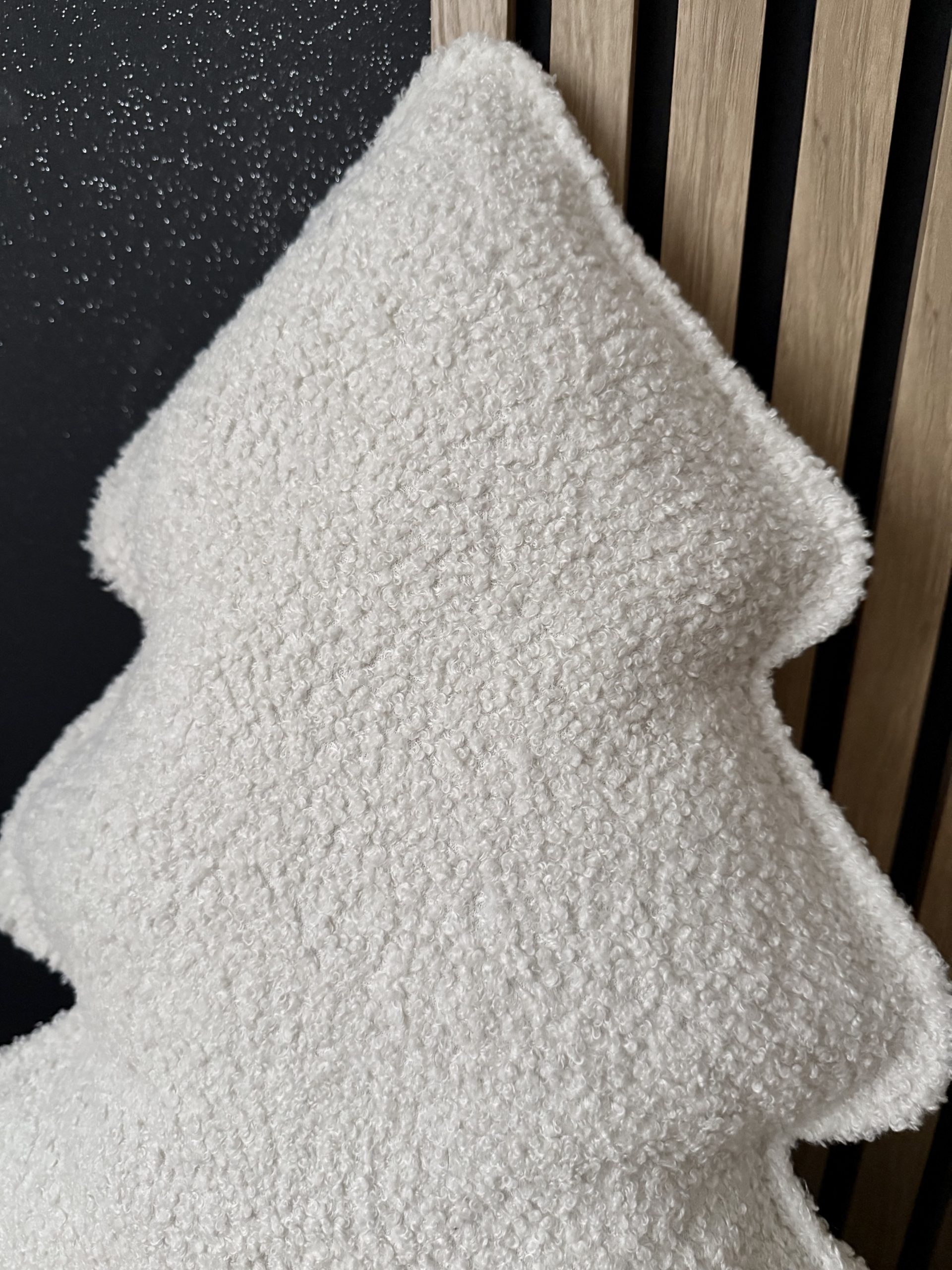 Zimowa Poduszka Choinka z Bukli – Ecru