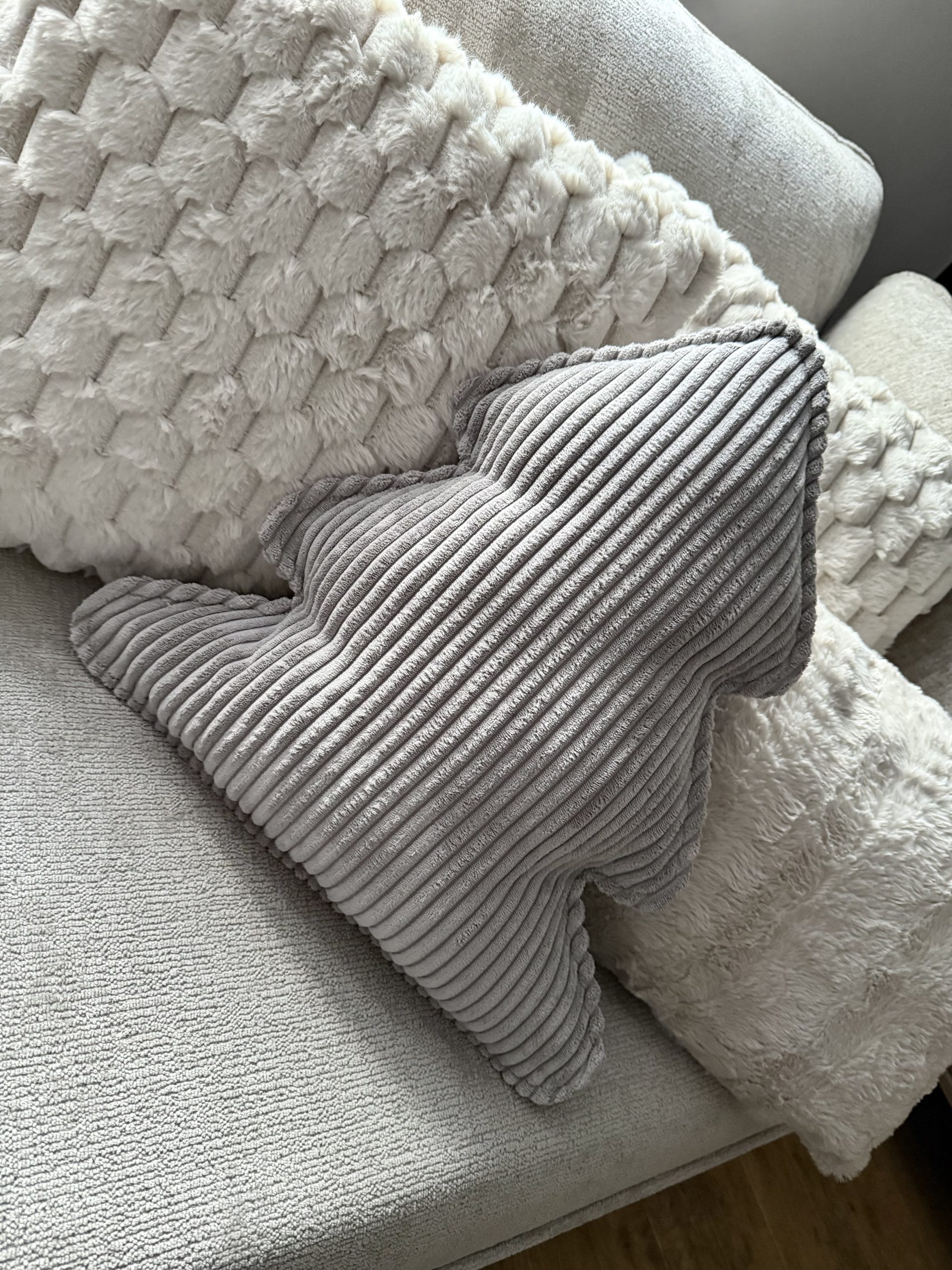 Zimowa Poduszka Choinka ze Sztruksu – Jasny Szary